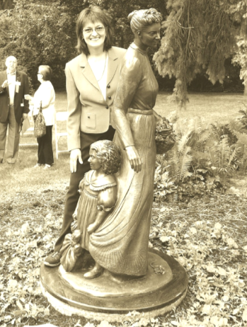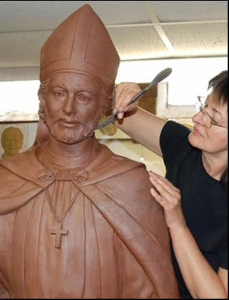 Local visitors to the Farmington area are familiar with her sculpture of a young girl at Dunckel Middle School; Warner Mansion's bust of Governor Warner and the outdoor sculpture of Mrs. Warner and her daughter Edessa and her life size rendition of St. Fabian.