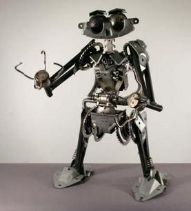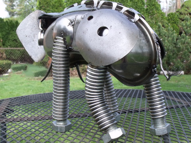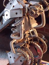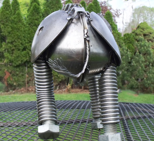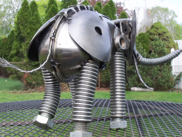 This is a little guy I made from the parts I found in a scrap yard nearby. The first piece I found was his head and the rest just fell into place.It was alot of fun creating him.