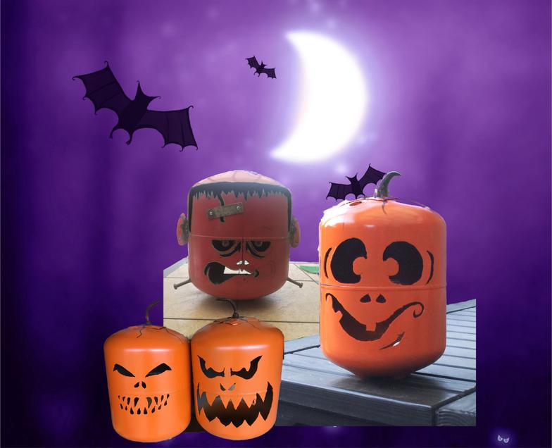 I'm always looking to re-purpose discarded metal objects. In this case my pumpkins are made from air conditioning coolant fluid containers.
