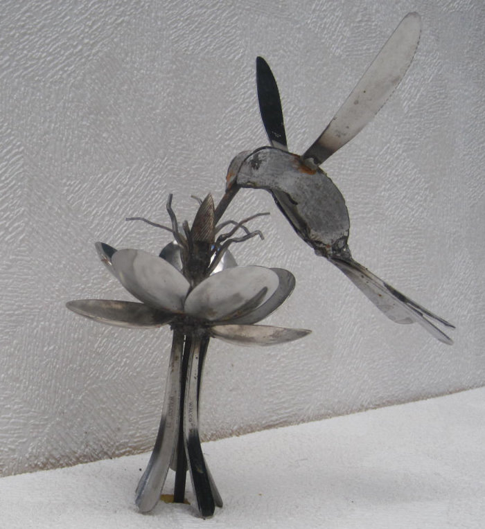 As well as metal art my back ground includes drawing, pastels, charcoal, pen and ink, wood carving and wax mold cast jewelry. I have always been interested in metal art because of this mediums transition from its raw, cold, hard and heavy state into something sensual at times or lighter than air, whimsical or thought provocing. I gravitated to " found art" because when I find that special piece of metal the rest of the creation come together then its just a matter of putting it all together. I really enjoy turning something from nothing into a piece that provides happiness, or simply starts a conversation.- - - Enjoy.